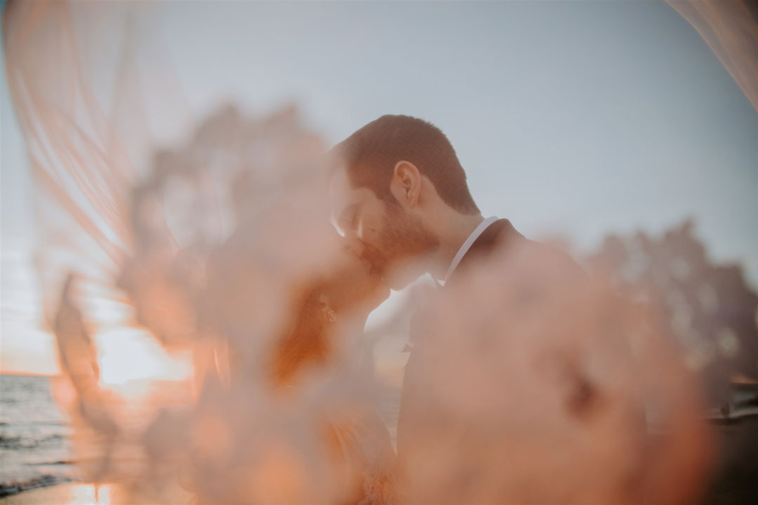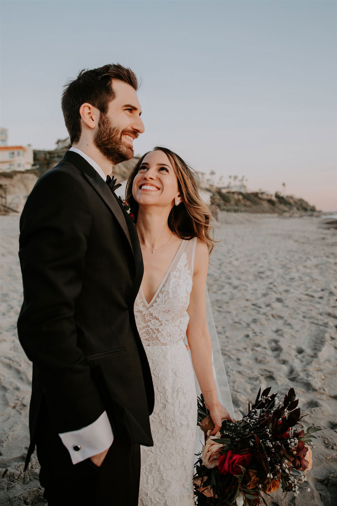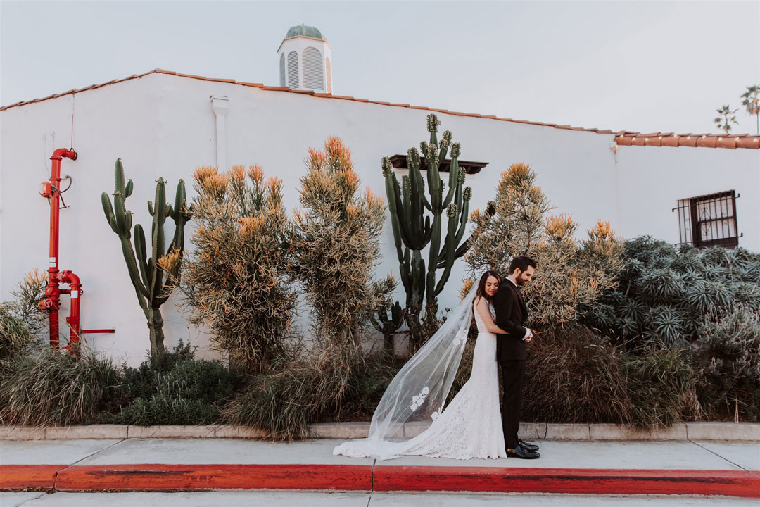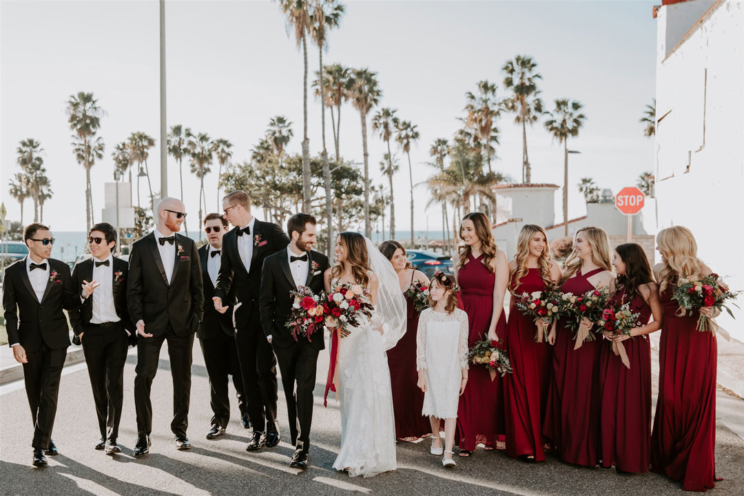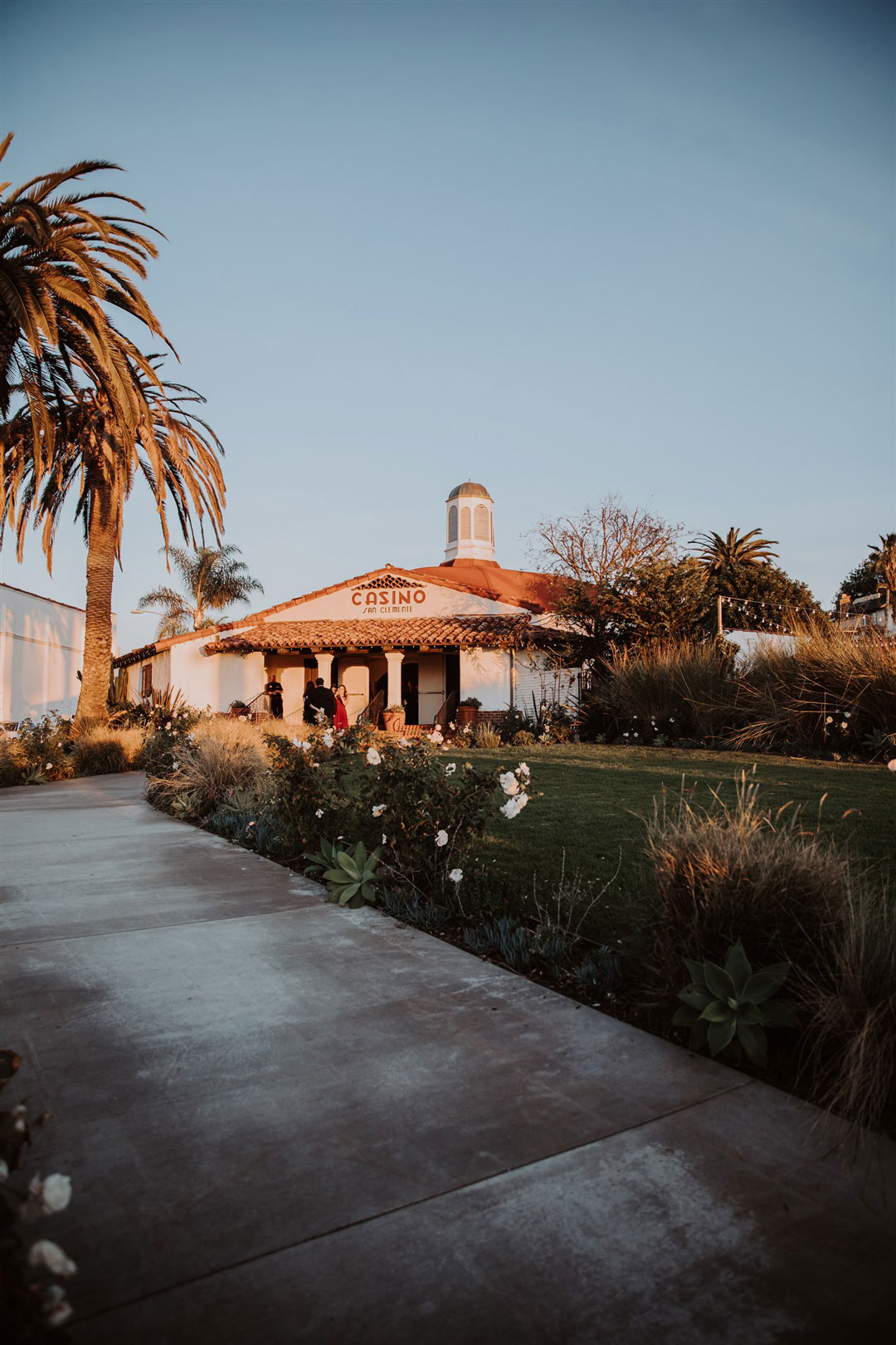 Airel and Joe met just outside The Casino San Clemente for their first look after getting ready with their closest friends and family. The sweetest smiles were painted on their faces as they turned towards each other for the big reveal. Overwhelmed with happiness, the soon to be bride and groom gazed into one another’s eyes savoring every moment. The two headed just across the street for beautiful golden hour beach pictures. The gorgeous orange and blue horizon made for unforgettable, breathtaking memories to last a lifetime. The wedding party met them back at The Casino for fun pictures before the ceremony.
