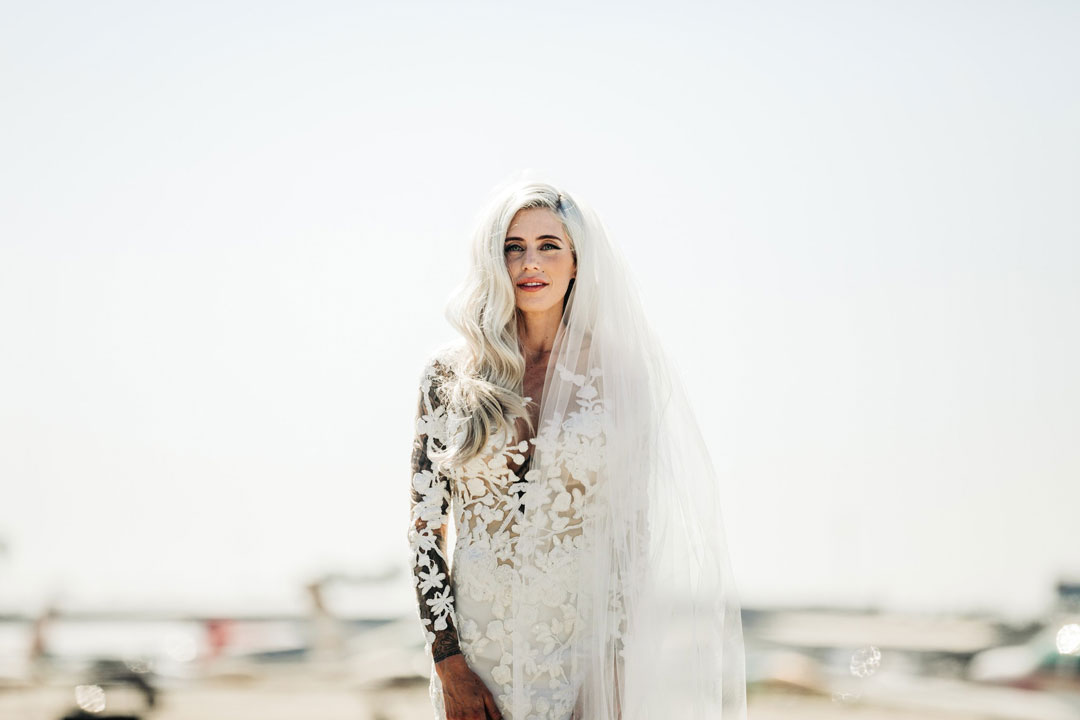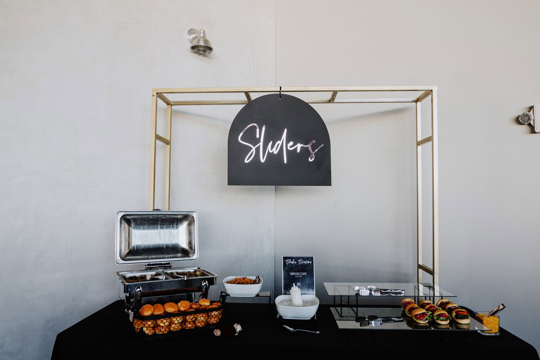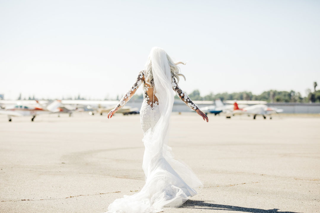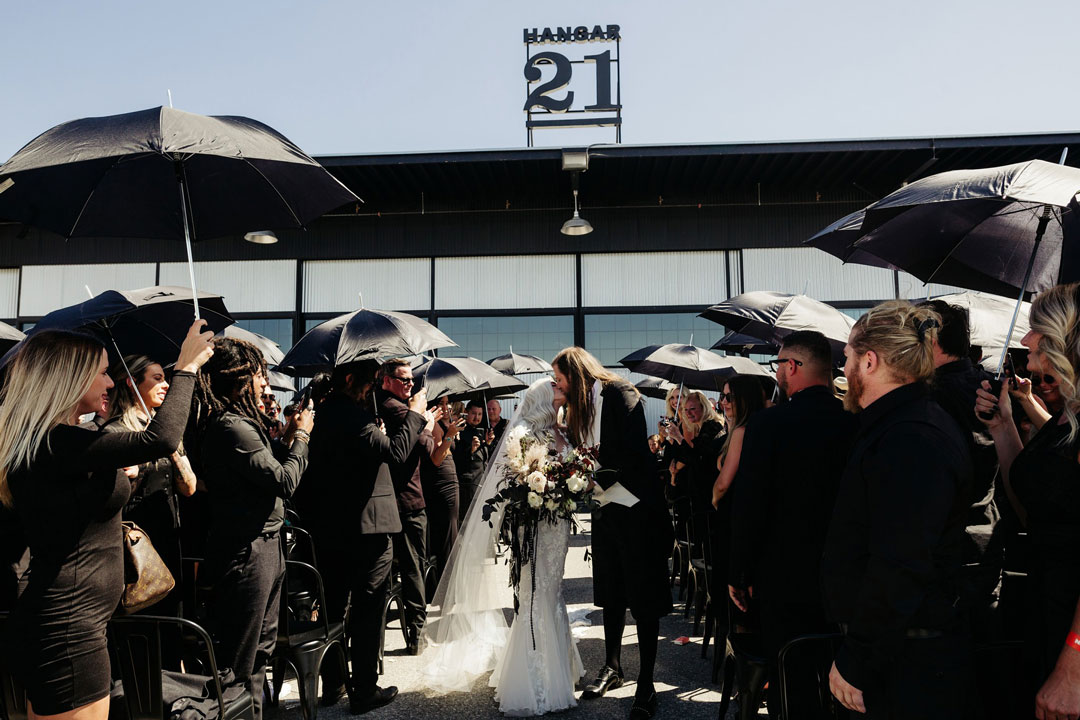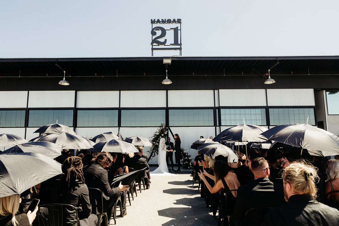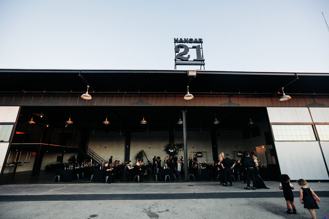 Venue: Hangar 21 South // Catering: Jay’s Catering // Photographer: Dana Grant Photography // Coordination: Fawn Events // Florist: Foxtail Florals // Rentals: Sundrop Vintage and Signature Party Rentals // Signage: Grace Words by Melanie // HMU: Vixavage // Video: Control Forever // Cake: Grace and Honey Cakes