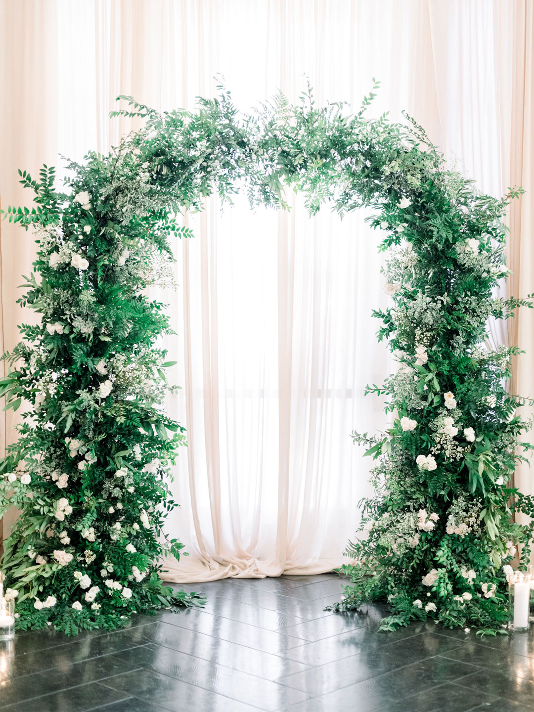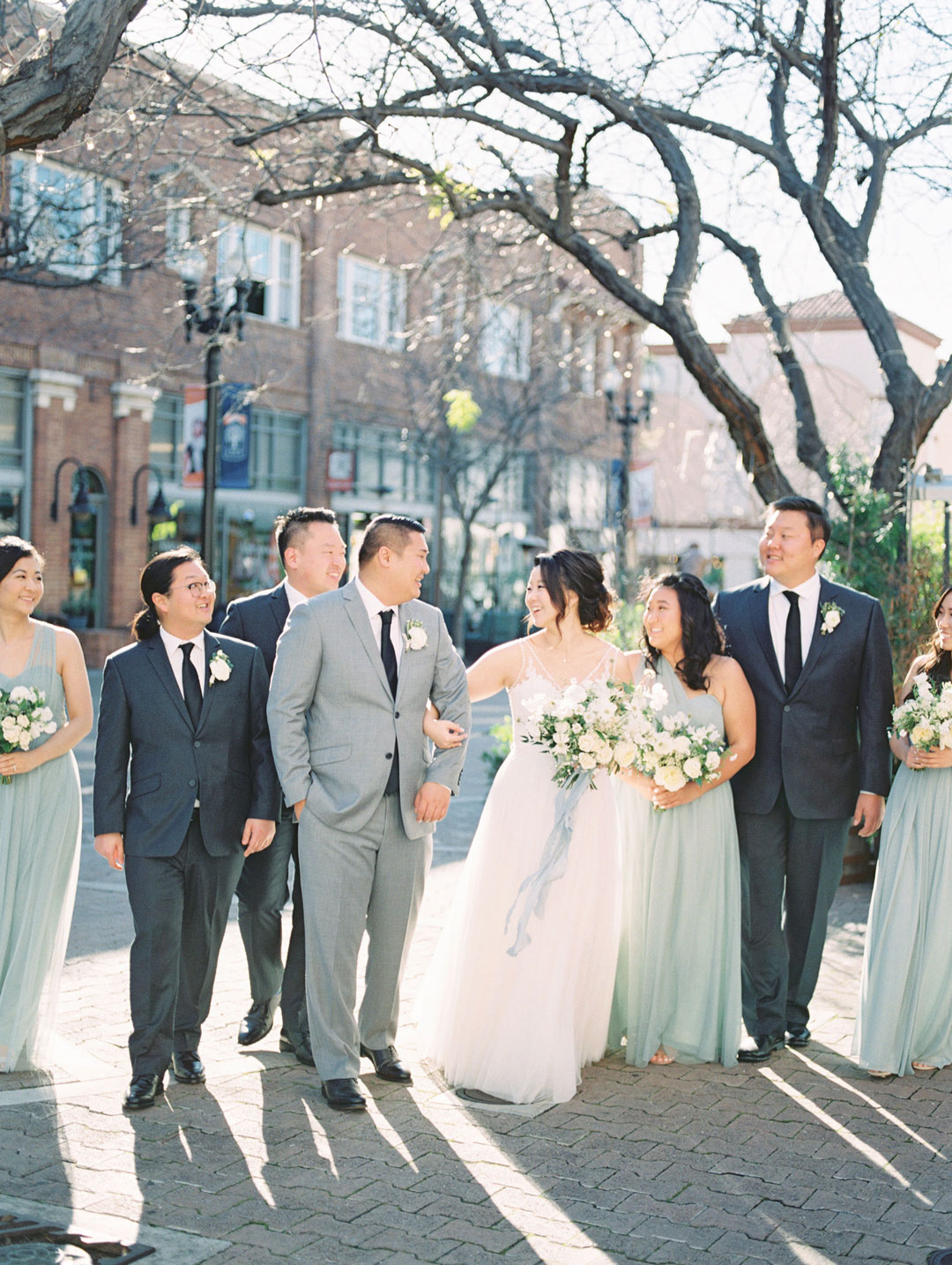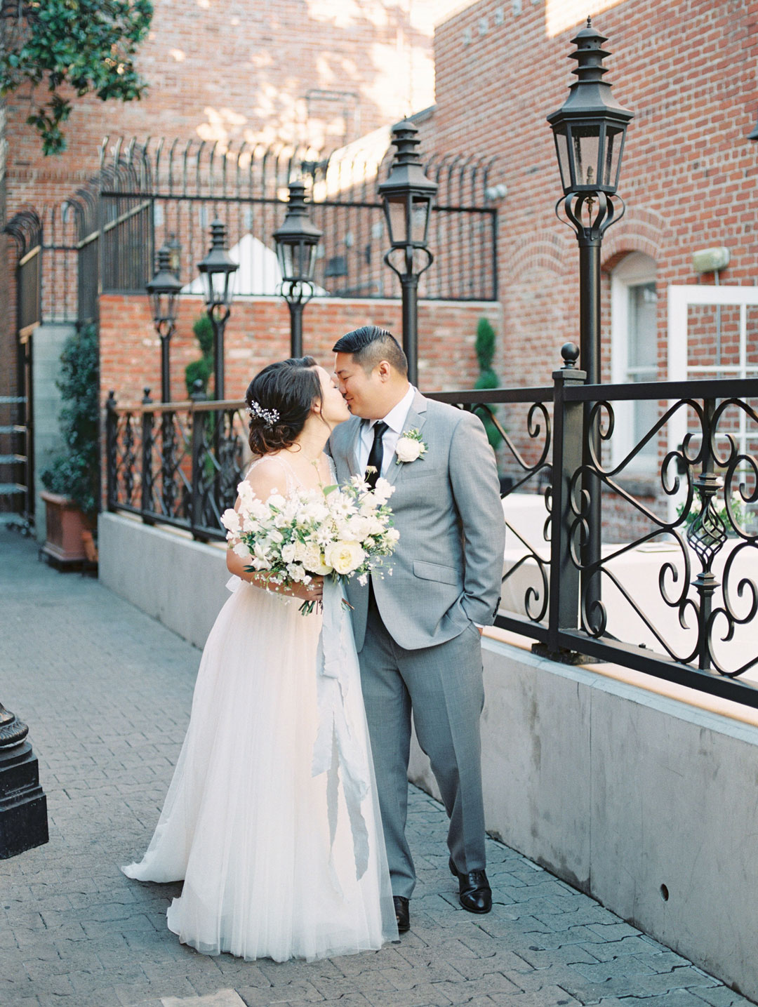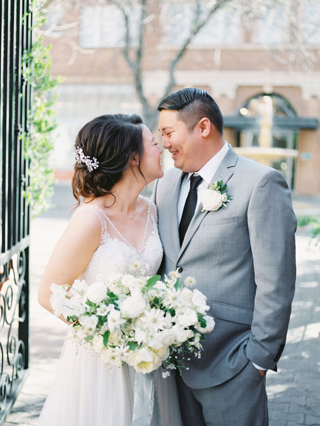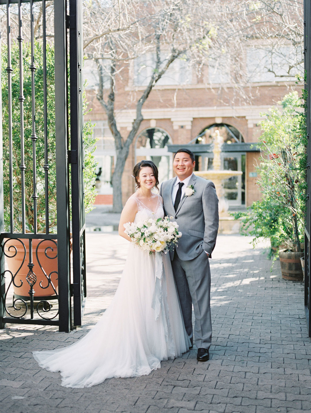 Soft hues of blue and touches of white breathed life into The Estate on Second for Bonnie and Jason’s wedding. A breathtaking archway made of green foliage met the wedding party at the head of the ceremony aisle. Guests anxiously awaited the bride’s arrival down the aisle. Bonnie stepped out in her sweet lace wedding gown and all eyes were on her. She met her groom under the archway and vows were recited. Everyone cheered and stood on their feet when the newlyweds sealed things with a kiss.