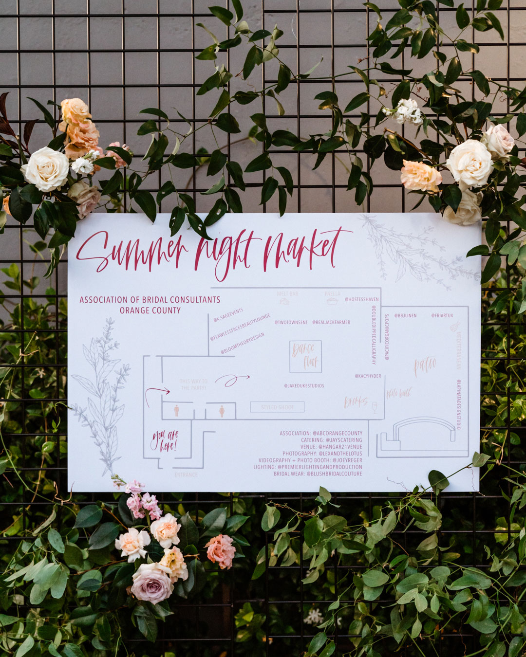 ABC Orange County held their monthly mixer (Summer Night Market) at Hangar 21 South last week and brought in vendors from all over the OC to mix, mingle and exchange knowledge of services. Kelsey Sage of K.Sage Events brought our venue to life with her interpretation of a boho farmers market with vendor carts and stands, golden décor touches and greenery and florals from Bloom Theory Design to tie it all together. Music from Two Towns Entertainment and Jack Farmer serenaded guests the entire evening while they perused vendor stands like Double Dipped Calligraphy, Flawless Faces Inc., Pinata Design Studio, Blush Bridal Couture OC, Friar Tux, BBJ Linens, Hostess Haven and more. We provided the food and drink while Pacific Organic Pops and KH Desserts brought their tasty desserts. A photobooth was set up by Joey Reger who also captured video content of the event while Lex and the Lotus photographed the Summer Night Market. Lounge spaces with rentals from Jake Duke Studios were styled out and extra lighting was provided by Premier Lighting & Production. Check out the images below to see how everything came together!