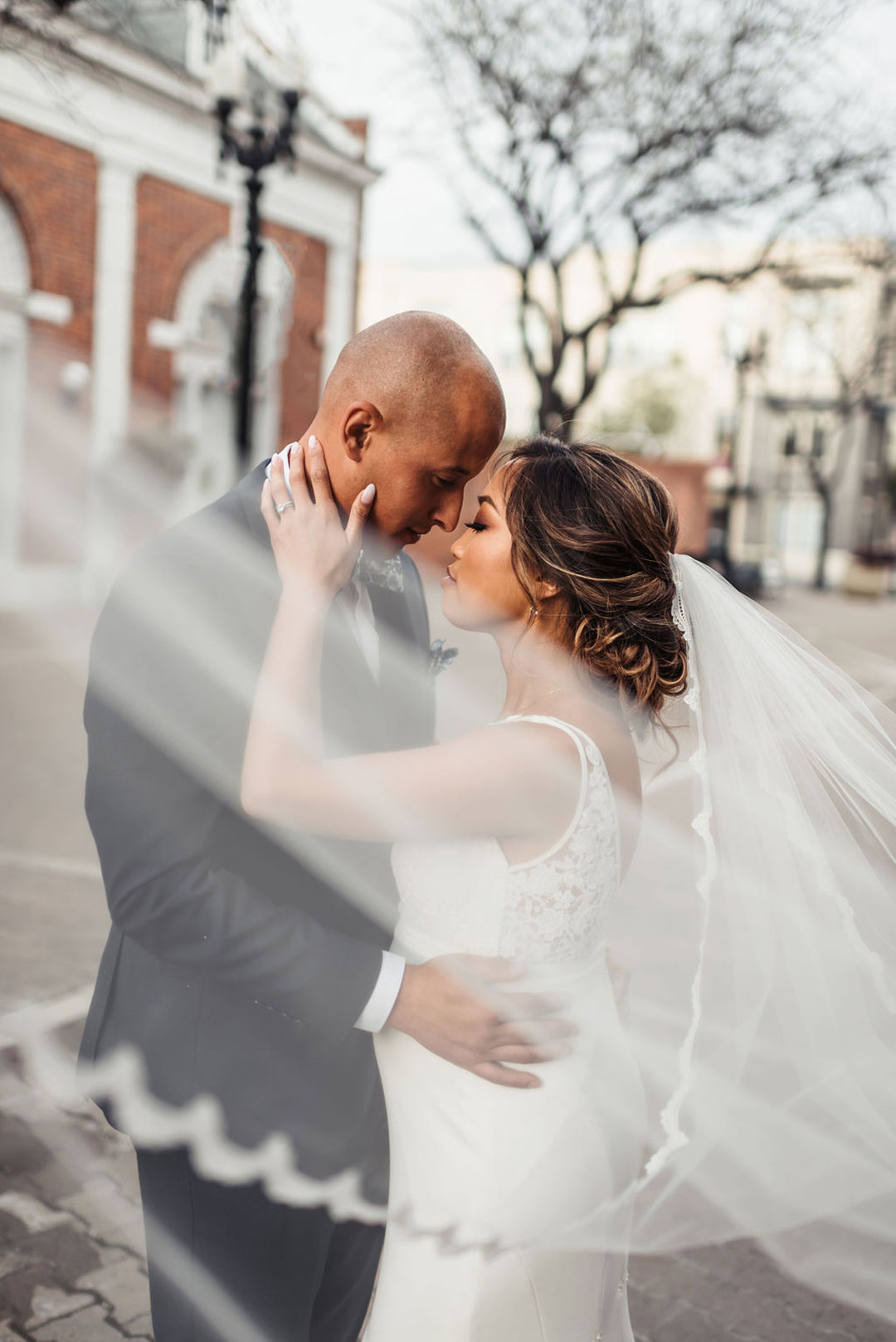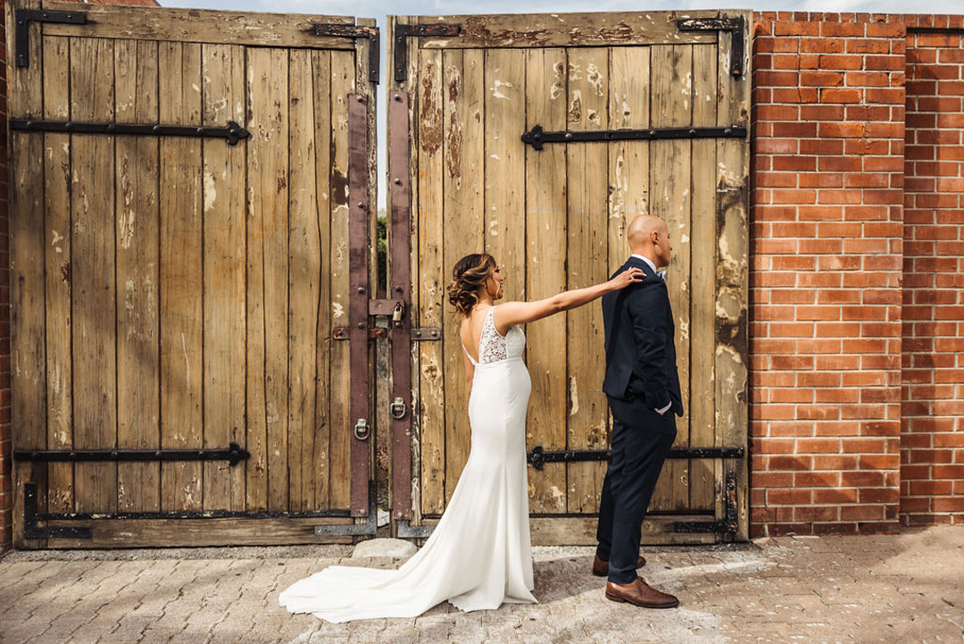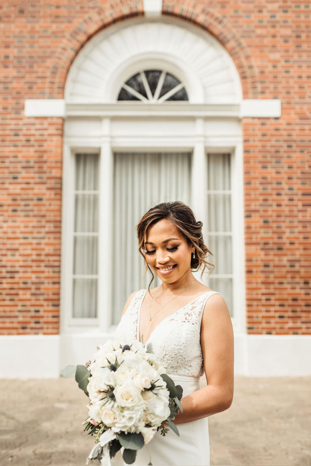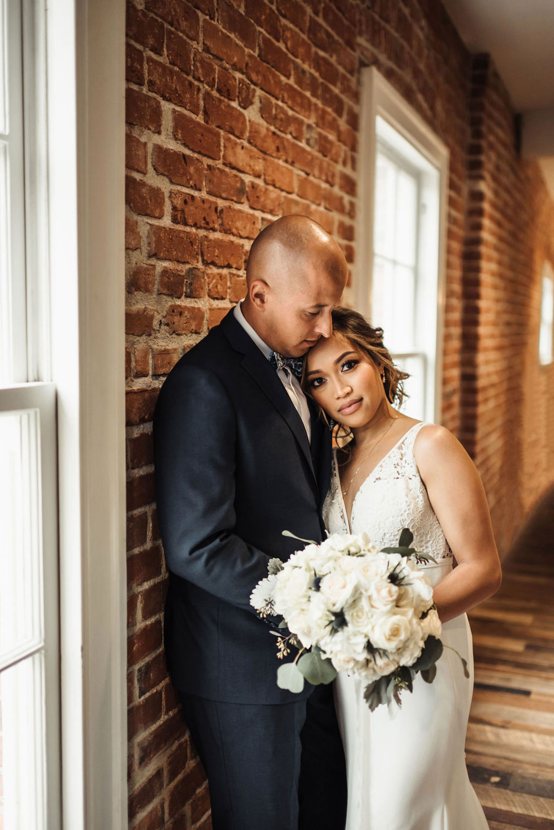 The Estate on Second was tastefully dressed in white rose petals and eucalyptus leaves for Joy and Jamie’s wedding day. Jamie finished getting ready in our attic space and met Joy outside for their first look. Jamie’s expression when he saw his beautiful bride was priceless and everything you’d want in a first look reveal. The sweetest moments were captured there and around the venue before the ceremony began.