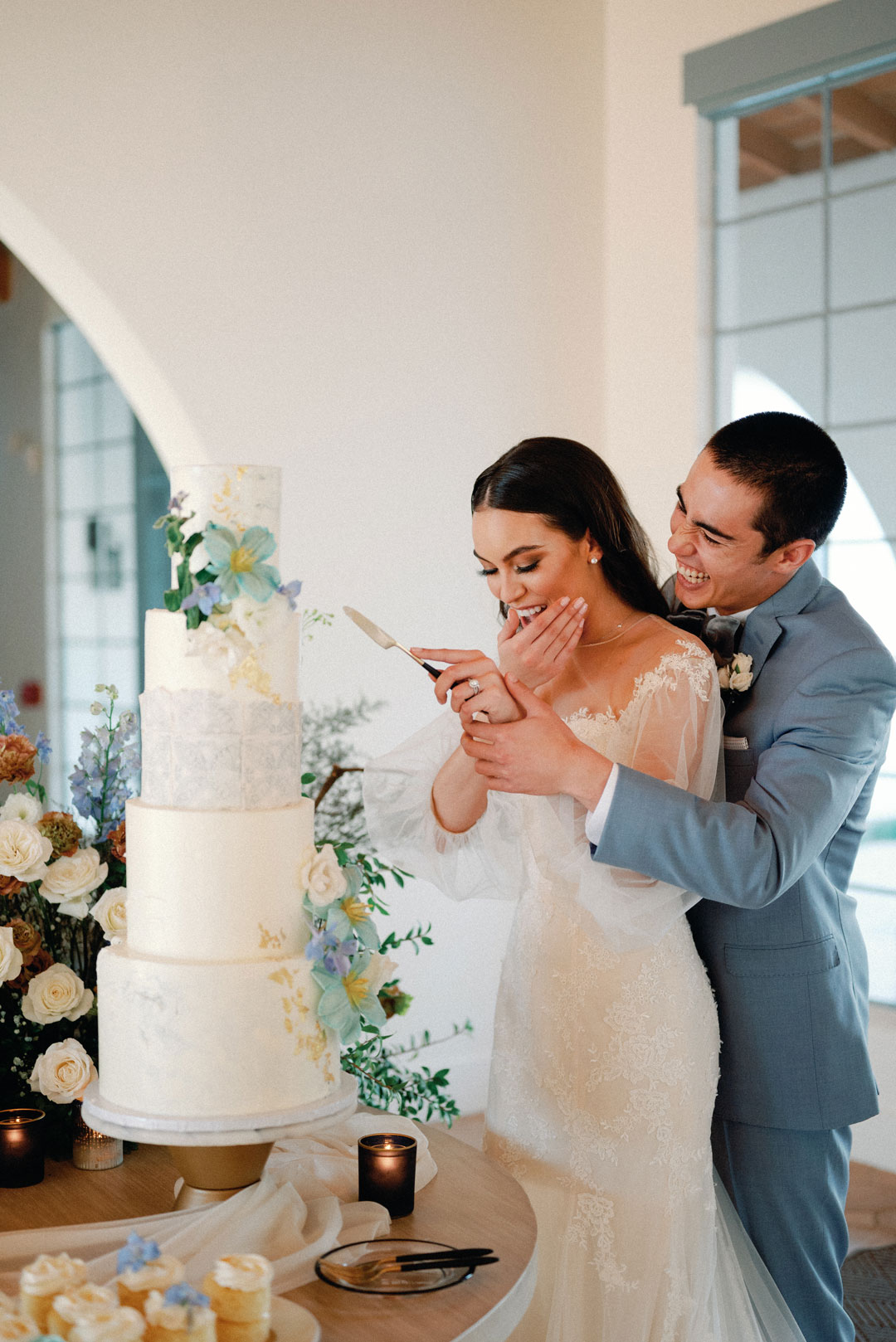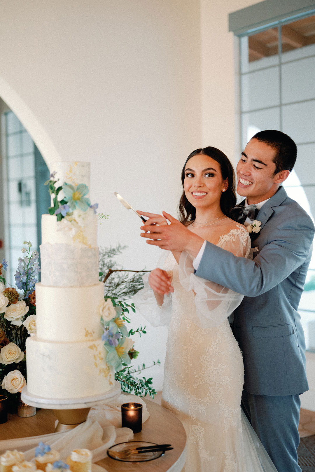 Venue: Grand Gimeno // Catering: Jay’s Catering // Planning: YJL Events & Campfire Events // Designers and Florists: Three Petals Design // Photographer: Lovely Light Imagery // Videography: Toucan Weddings // Rentals: MTB Event Rentals // Hair and Makeup: Makeup by Lucky and The Pinned Beauty // Invitations: Luckie Design Co. // Suit Rental: Friar Tux // Dress: AW Bridal // Jewelry: Orchid Gems // Cake: Crazy Sweets by Jay // Models: Willow Models – Erika Pena and Jacob Lee // Flat Lay Backdrops: Chasing Stone