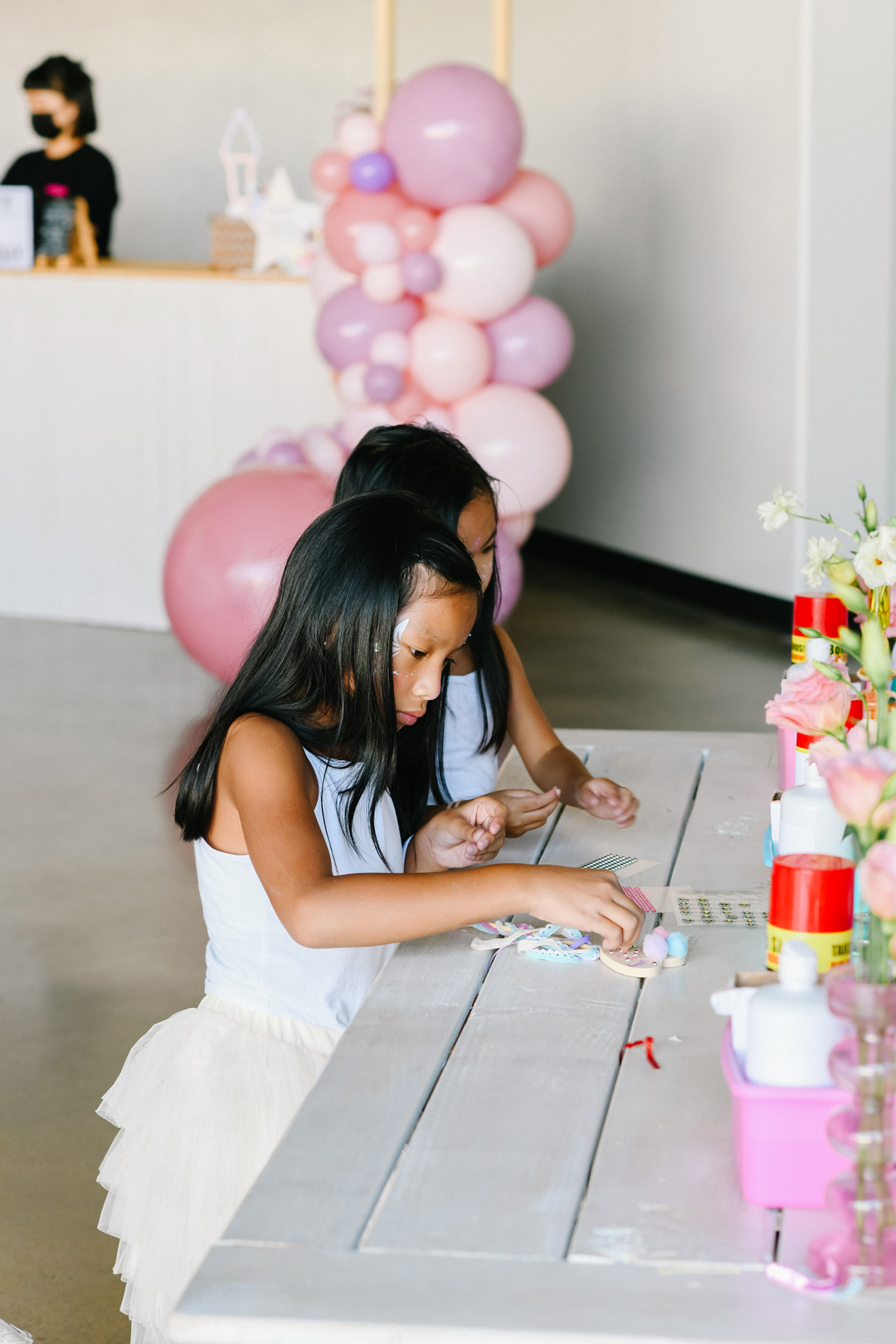 Tons of fun activities were set up for the kids to enjoy. A slime station with different colors and fillings, diy princess wand station filled with glitter and ribbons, face painting and jewel station, bounce house, and ball pit kept everyone busy the entire party. About an hour into all the fun, everyone gathered around the birthday boy and girl’s table where a beautifully decorated cake was placed. Friends and family sung “Happy Birthday” and candles were blown out while making wishes. Cake and cookies were served and devoured and the remainder of the party was spent jumping in the bounce house getting all their energy out before leaving.
