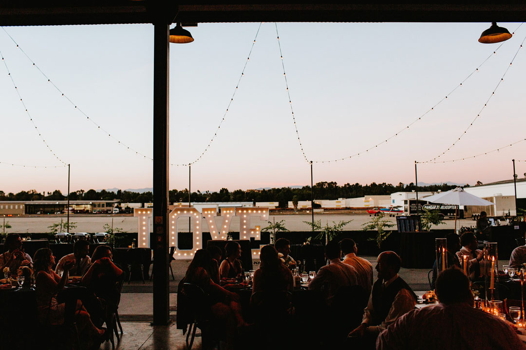 Venue: Hangar 21 South // Catering: Jay’s Catering // Late Night Snack: In N Out // Photography: Todd James Photography // Coordination & Design: Events by the Cea // Florist: Bloom Theory // Video: Gently Crafted Films