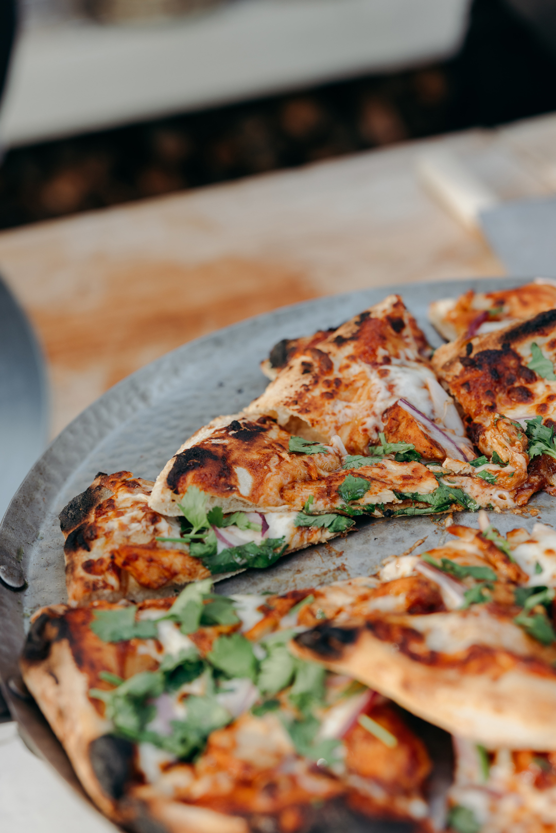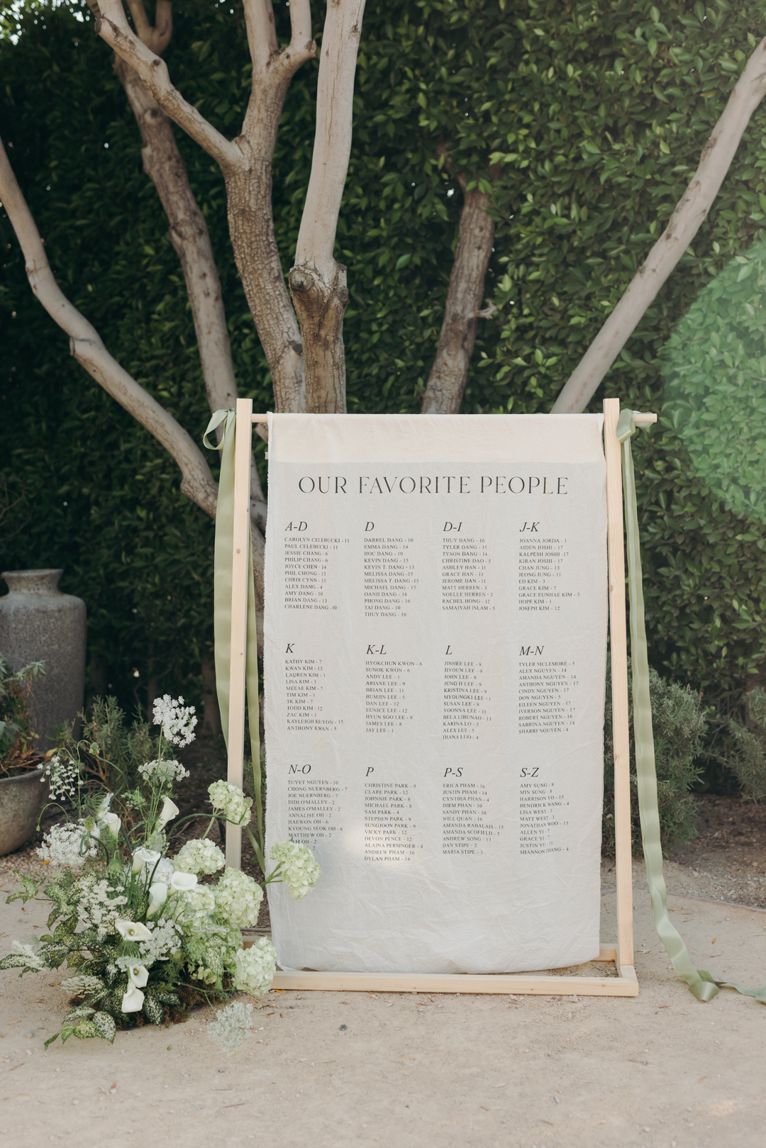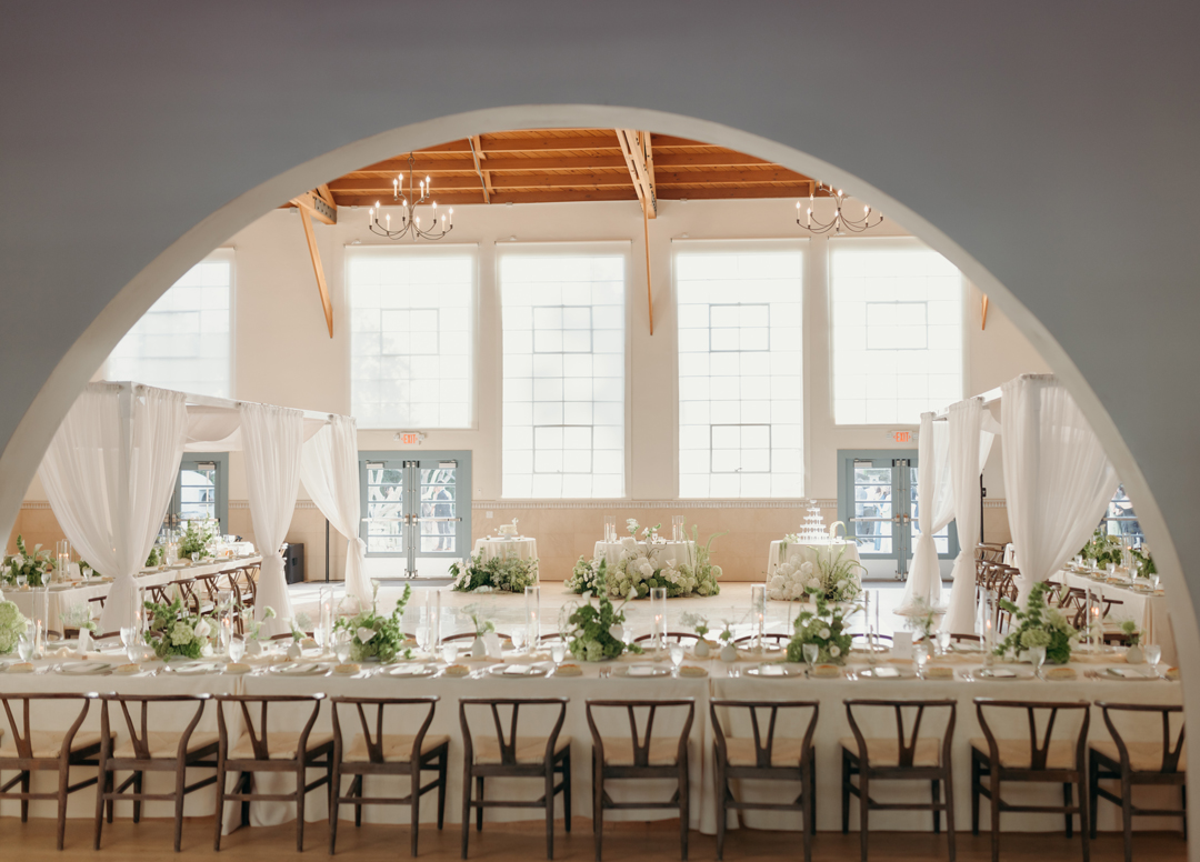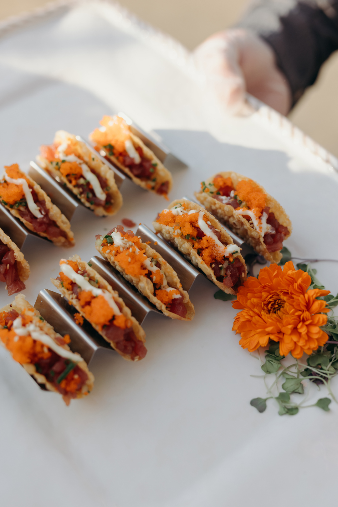 Guests lined up for Wood-Fired Neapolitan and Classic BBQ Chicken Pizzas that were cut and served fresh while Filet and Wild Mushroom Wellingtons and Mini Ahi Tacos were tray passed around the Olive Grove. Signature Aperol Spritz and Tequila Moscow Mule cocktails were poured at the bar along with beer and wine keeping guests refreshed. After lots of mixing and mingling, guests checked the seating chart and headed inside for the reception.