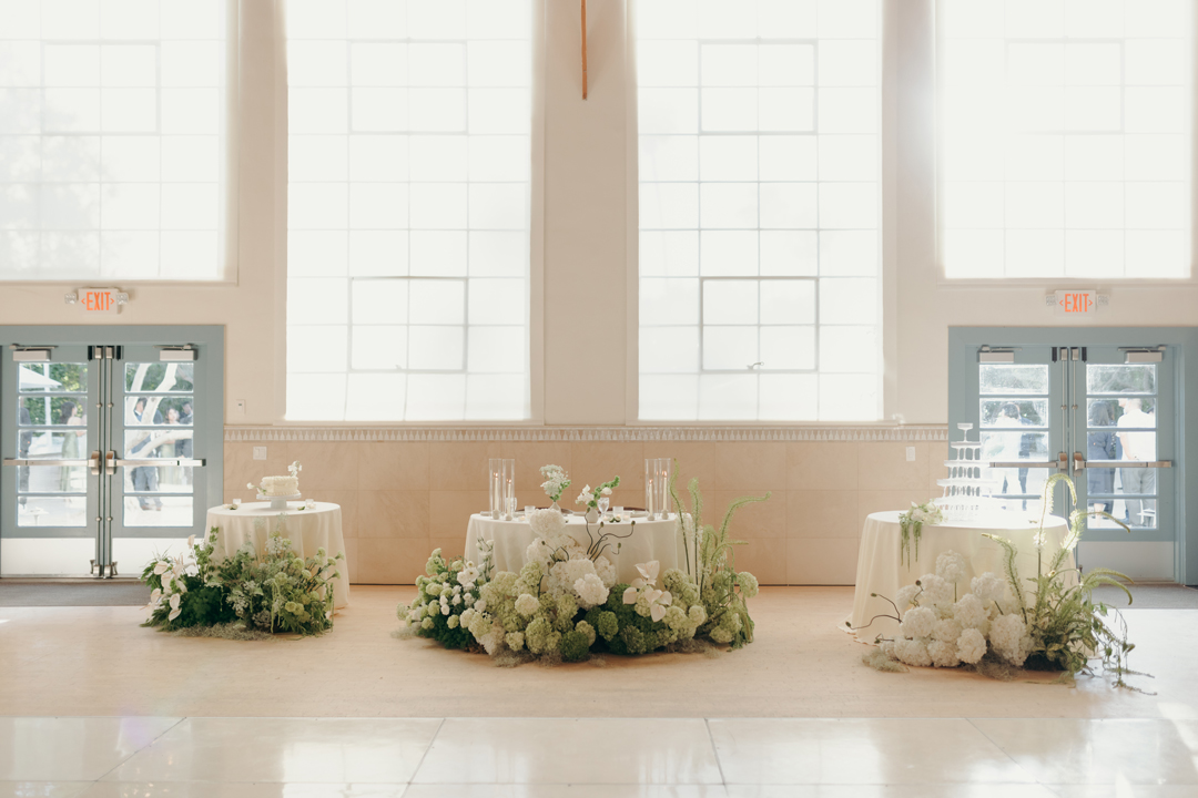 White draped canopies were stationed around tables topped with green and white floral arrangements. Shawn and Stephanie made their grand entrance, shared their first dance, then took a seat at their sweetheart table. Pear and Walnut Salad was served followed by plated Classic Filet Mignon and Roasted Atlantic Salmon Fillet with Haricot Verts and Gourmet Mashed Potatoes while guests shared toasts. After dinner the newlyweds cut into our Vintage Heart Cake and invited everyone to indulge in our Taste of Asia Dessert Station with a collection of Yuzu-Mango Tarts, Ube Crinkle Cookies, Pandan Cupcakes, Café Sua da Macarons, and Golden Milk Flan with Chai Whipped Cream. After a sweet treat, everyone hit the dance floor. Dances were shared, selfies were taken, and a late night snack of Mini Corn Dogs and Cuban Papas Rellenas were highly appreciated by guests. Well wishes were shared and Stephanie and Shawn were sent off with love of love.
