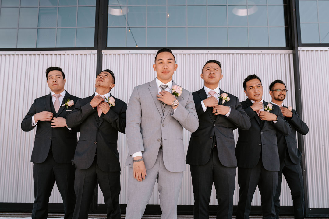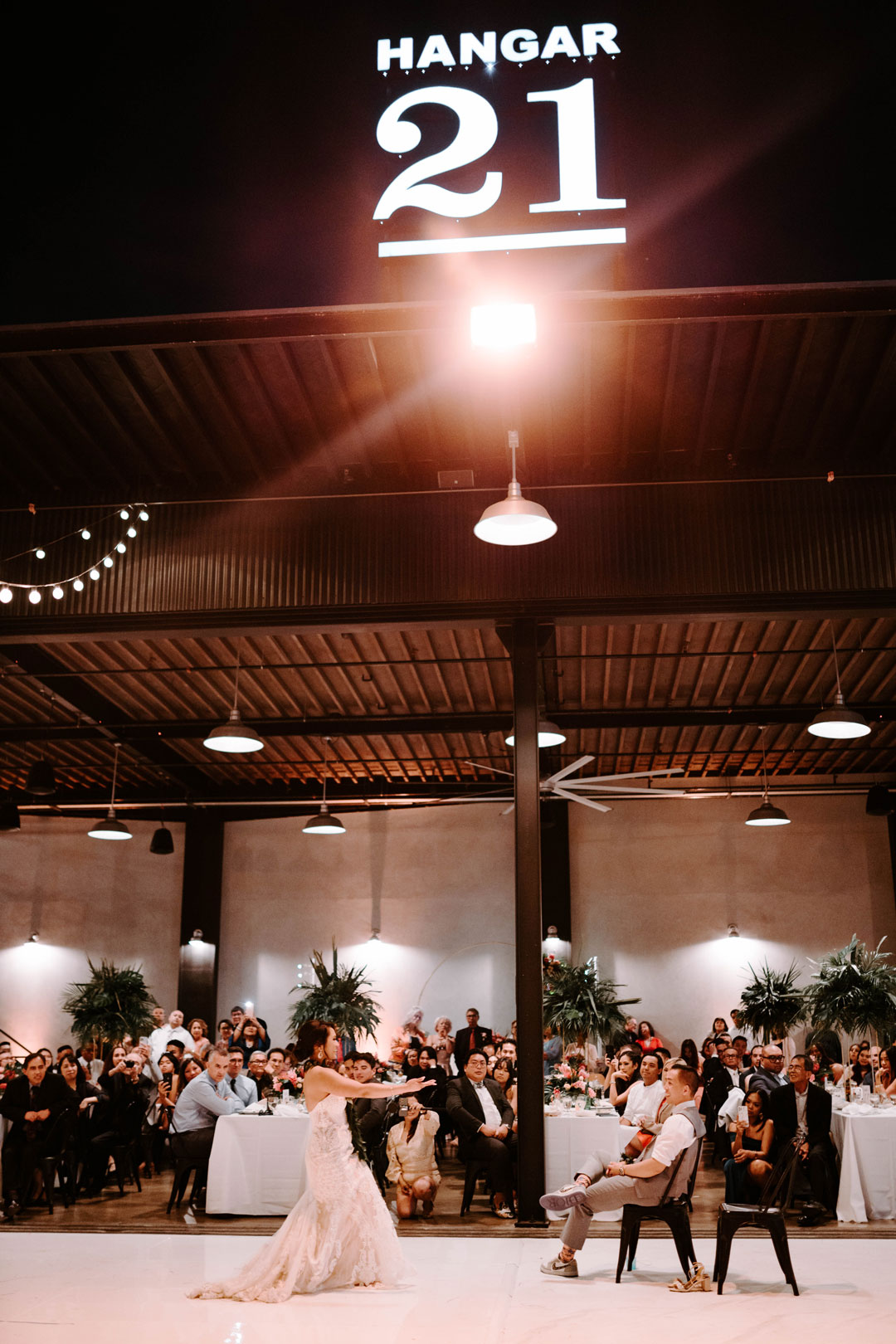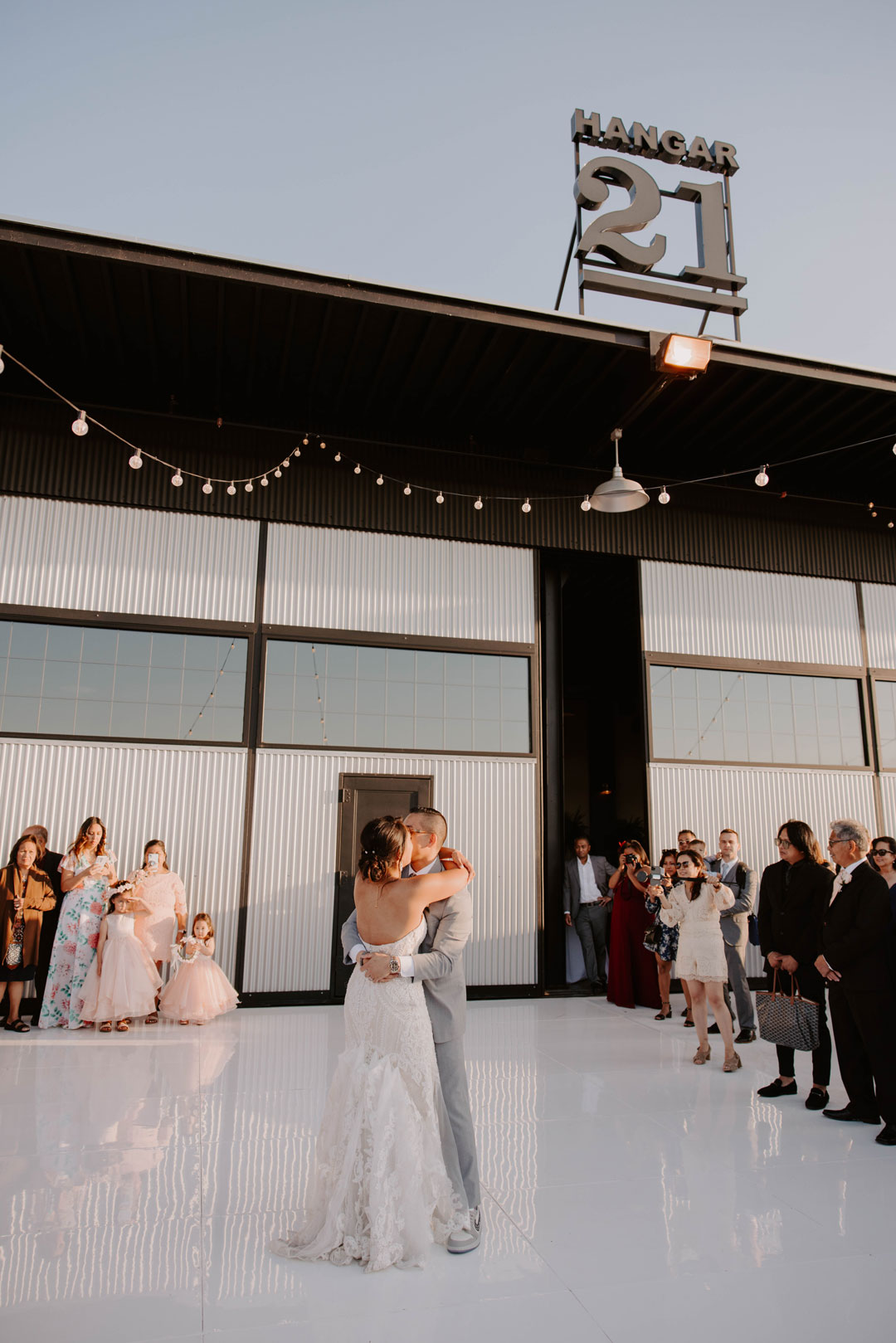 Venue: Hangar 21 South // Catering: Jay’s Catering // Photographer: Kelsey C. Photography // Planning + Florals: KQ Elements