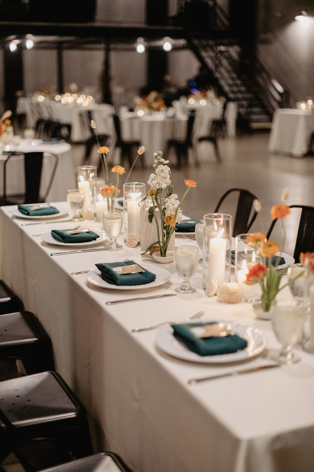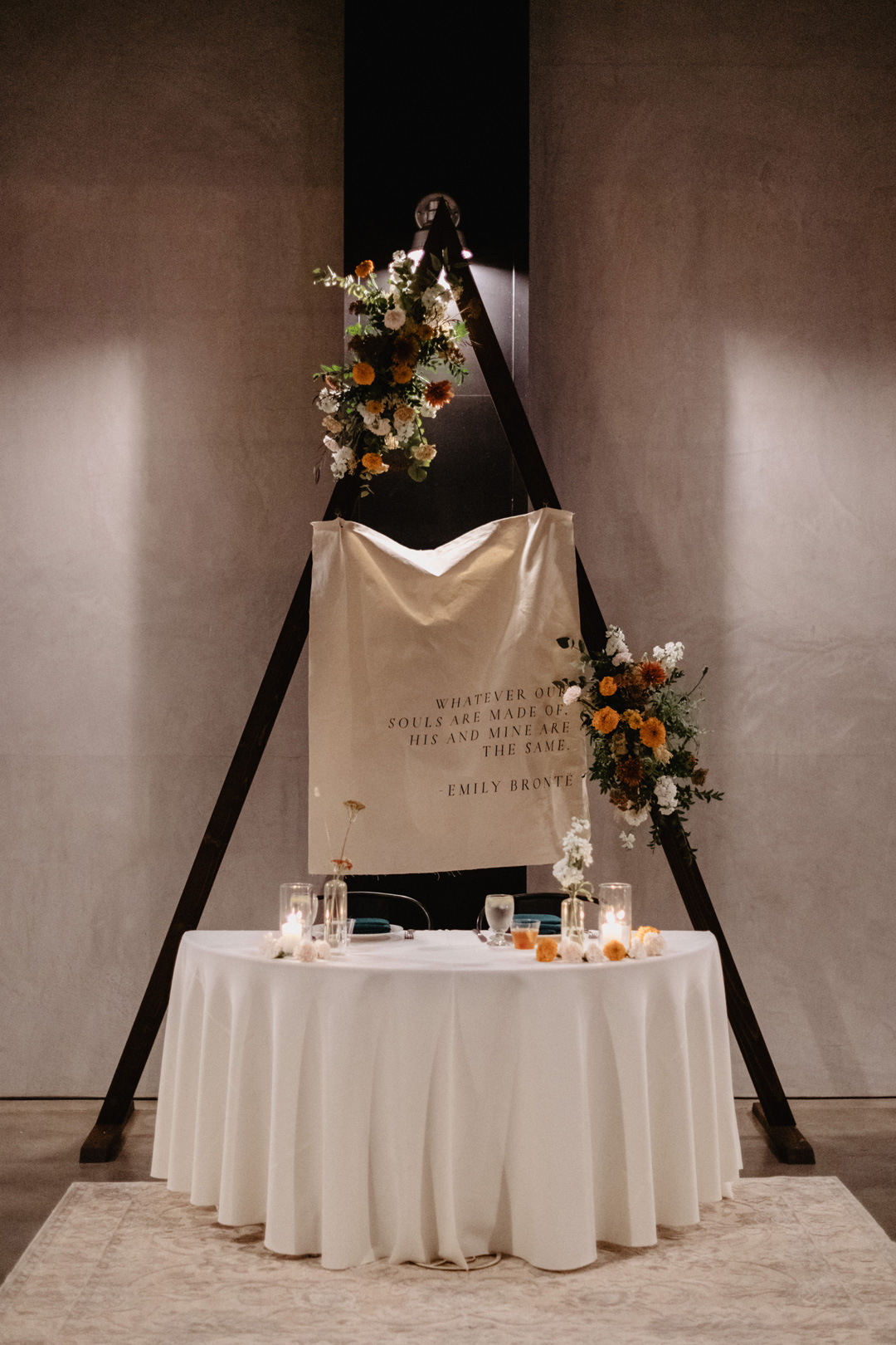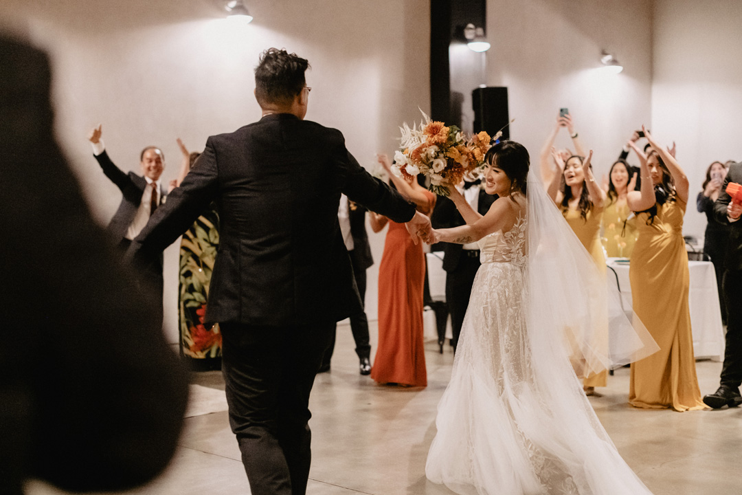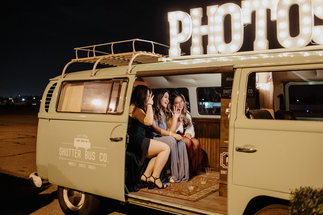 Venue: Hangar 21 South // Catering: Jay’s Catering // Photographer: Brocoff Photography // Florist: Everbloom Floral Design // Planning: Grit and Grace Events Co. // Sweetheart Table Sign: Linen and Poppi // HMUA: Vivian Tran Artistry