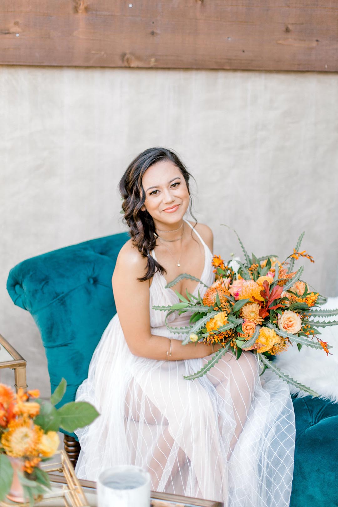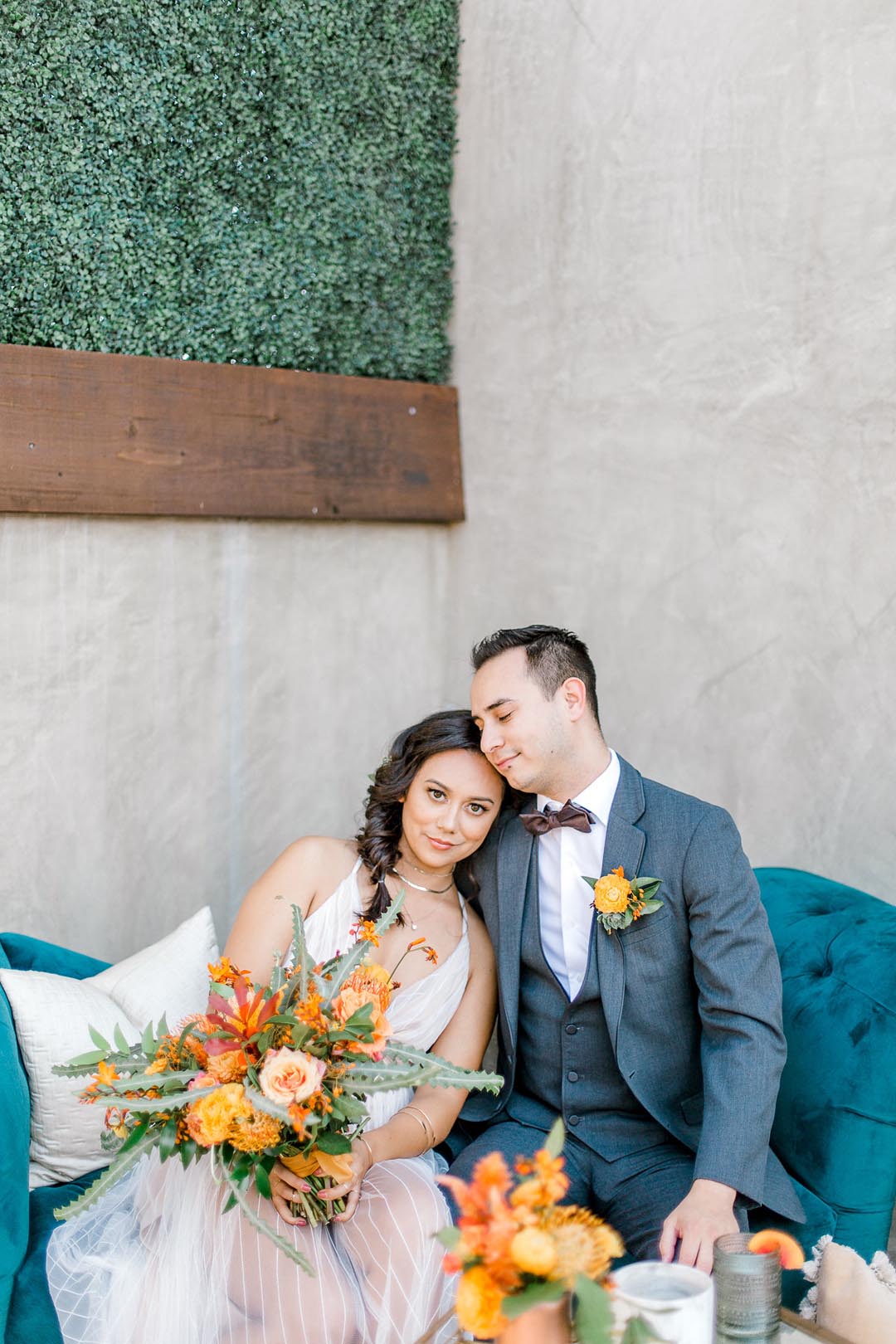 Events by the Cea transformed The Estate on Second into the industrial chic space of our dreams. Details including fresh orange florals, agate, distressed wooden chairs, succulents, and greenery engulfed our venue leaving the space nothing short of jaw dropping. With help from The Floral Story Co, Baker Party Rentals, and Events by the Cea, we were able to take our perfect blank canvas that is The Estate and turn it into an elegant, swoon-worthy setup as featured on The Perfect Palette.