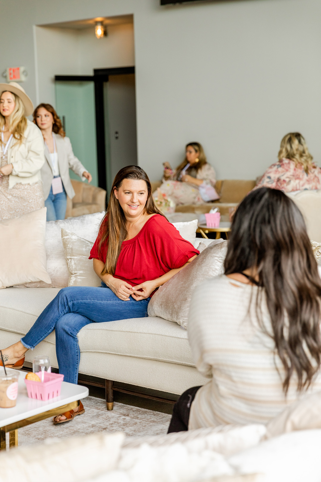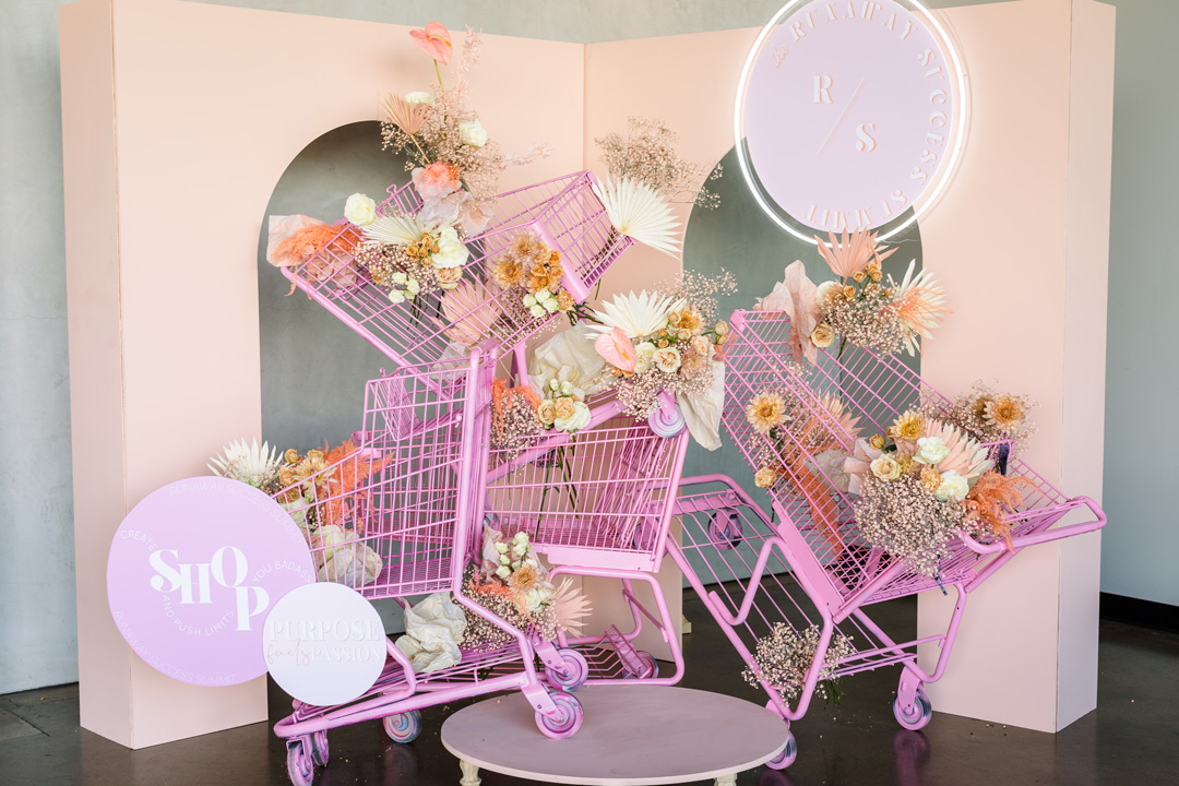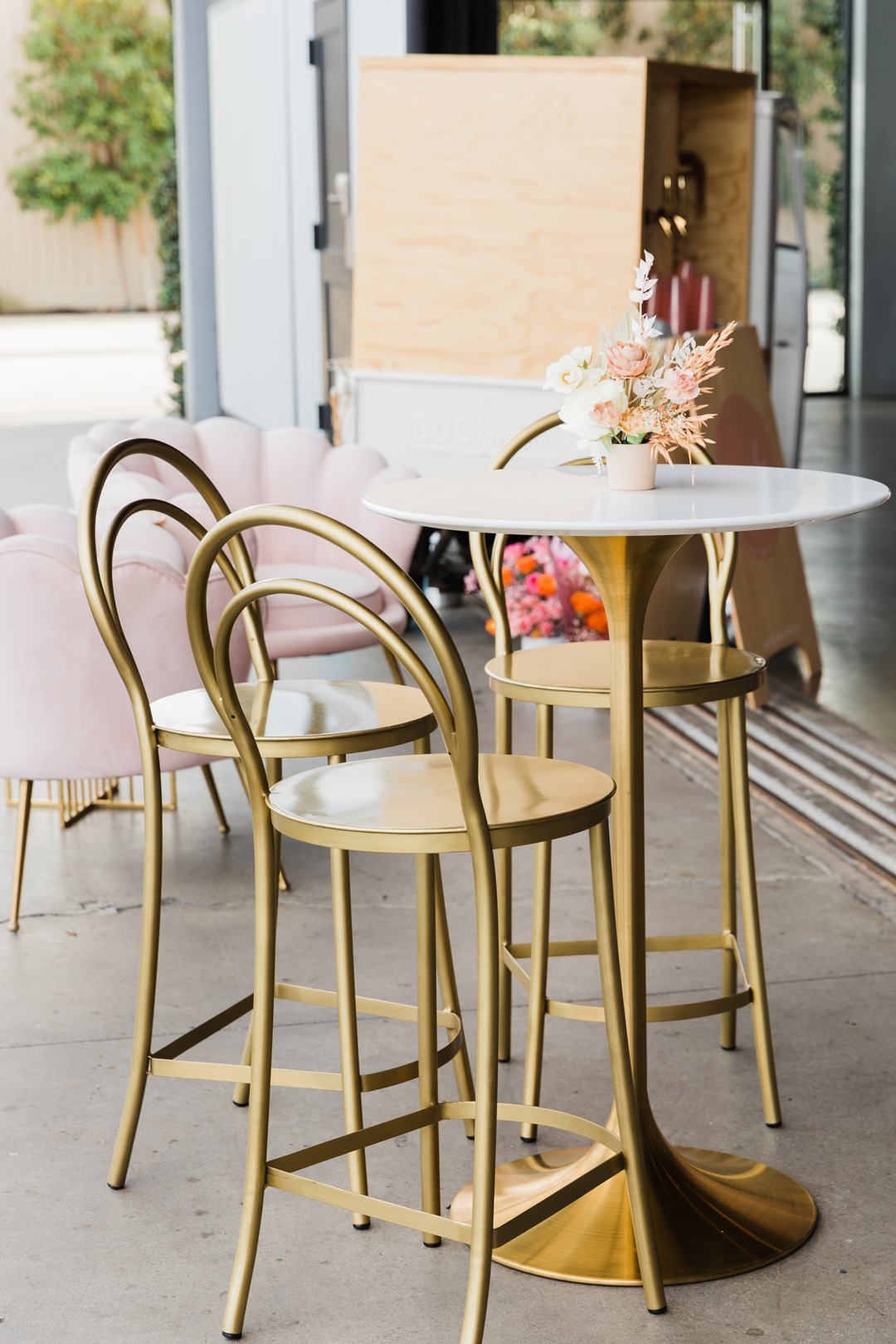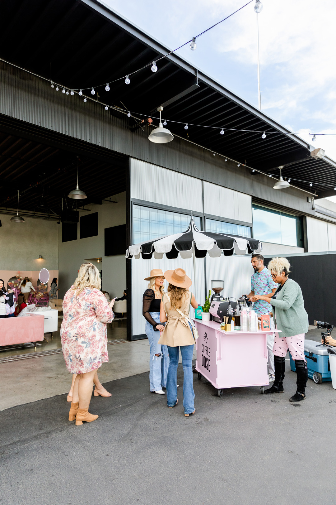 The stage was set at Hangar 21 South for The Runaway Success Summit with host (and speaker) Nikki Anderson-Matthews and guest speakers Jeni Castro, Lindsey Heppner, Christa Paarni, Brooklyn Powell, and Kaylyn Kakuska. A peachy pink backdrop with floral arrangement details and neon Runaway Success Summit sign stood tall behind a row of modern gold chairs awaiting each speaker. Guests arrived and checked in on the side patio at a wooden trolley cart with branded signage surrounding the space. Goody bags filled with little take home treats and stationary items for each attendee were passed out, then guests headed to the tarmac and hangar for the main event. To say that the decor for the Runaway Success Summit was an Instagrammers dream would be an understatement. There were photo moments everywhere! A pink telephone wall with “TALK the TALK” and “WALK the WALK” statements perfectly encompassed this boss babe event. Desert Luna Photobooths made sure to catch all the action here. Right next-door, a magenta shopping cart display filled with peach, ivory, tan and coral flowers made for yet another fun photo activation. But wait, that’s not all! A selfie mirror with neon message, “hey girl you got this,” was propped up by the lounge area and decorated with uplifting phrases and flowers. Marble and gold cocktail tables with matching gold chairs provided casual seating before the event started and Coffee Dose was serving up their famous caffeinated concoctions. As more and more excited attendees filled the venue, the guest speakers took their spots on the stage. Nikki called everyone to take a seat and opened the summit with a thank you and welcome. The speaker panel took off with topics like building a brand, starting a business, networking and more. Personal stories of hardship and success that made each woman who they are today were shared and the speaker panel ended with words of encouragement. Once the panel ended, guests were free to stick around and continue networking or head out for the evening.