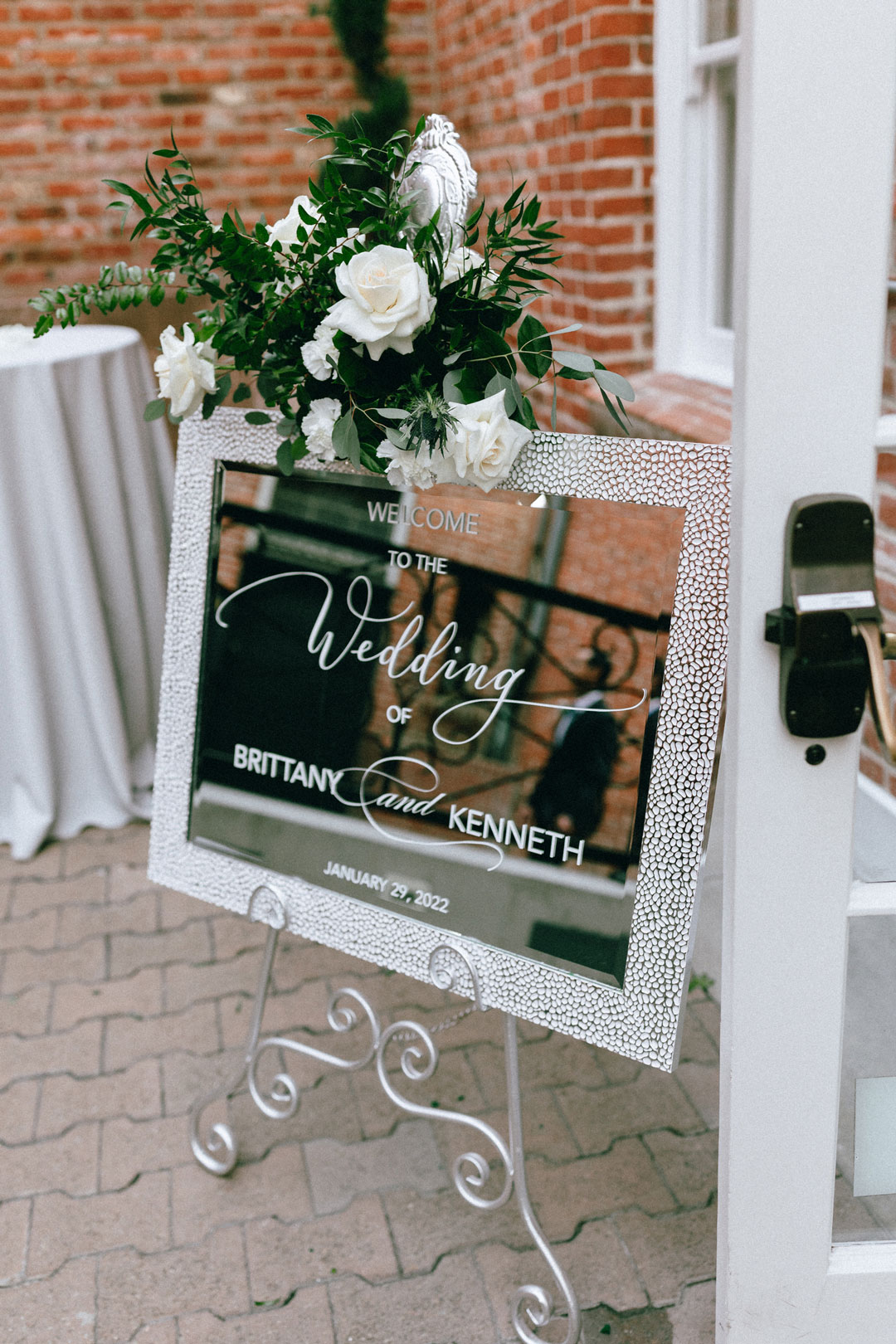 Cocktail hour was full of delicious food including Crab Cakes, Lemon Parmesan Artichoke Hearts, and a Slider Station with Kaula Pulled Pork and Chicken Parm Sliders. To wash it all down, the bar was serving up the newlywed’s signature cocktails, a Margarita and Paloma. Brittany and Kenny mixed and mingled with their guests making sure to thank each of them individually before dinner. As cocktail hour came to an end, guests were invited back into the Crystal Ballroom for reception.